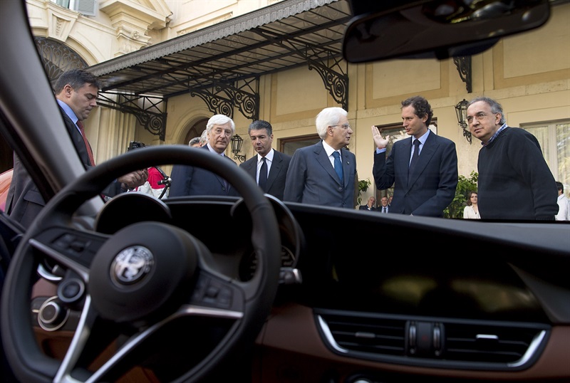 E’ stata presentata al Presidente della Repubblica, Sergio Mattarella, al Palazzo del Quirinale, la nuova autovettura Alfa Romeo “Giulia” dall’ing. John Elkann e dal dott. Sergio Marchionne, rispettivamente Presidente e Amministratore Delegato di Fiat Chrysler Automobiles e FERRARI , con altri dirigenti e tecnici dell’azienda.