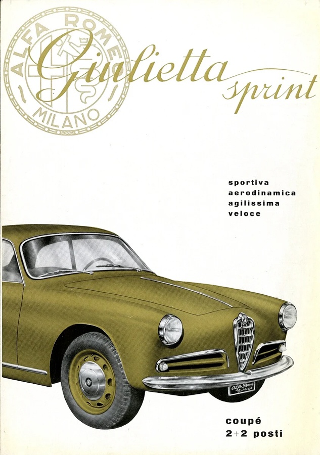 Il Centro Stile Alfa Romeo si mette all’opera e una delle proposte – quella per la versione coupé Sprint – verrà in seguito sviluppata da Bertone, ad opera di Franco Scaglione, lo stesso designer della quasi contemporanea “2000 Sportiva”, della successiva “Giulietta Sprint Speciale” e della meravigliosa “33 Stradale” del 1967. La stessa Bertone curerà poi la costruzione della Giulietta Sprint.